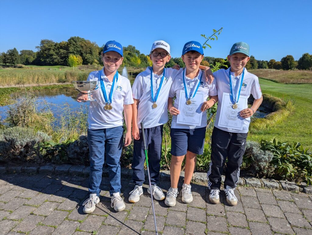 (hb) Am letzten Ferientag wurde auf der Anlage des Golfclubs Am Habsberg die Talentiade ausgetragen, das Finale des Bayerischen Mini Team Cups. 20 Mannschaften aus ganz Bayern hatten sich dazu qualifiziert. Es ging über neun Löcher von den grünen Abschlägen. In unserem Team spielten Johannes Rabl, Konrad Lehmayr, Emil Greß und Moritz Fischl. Sie hatten frühe Startzeiten und waren somit nicht von späteren Regengüssen sowie einer Gewitterunterbrechung betroffen.